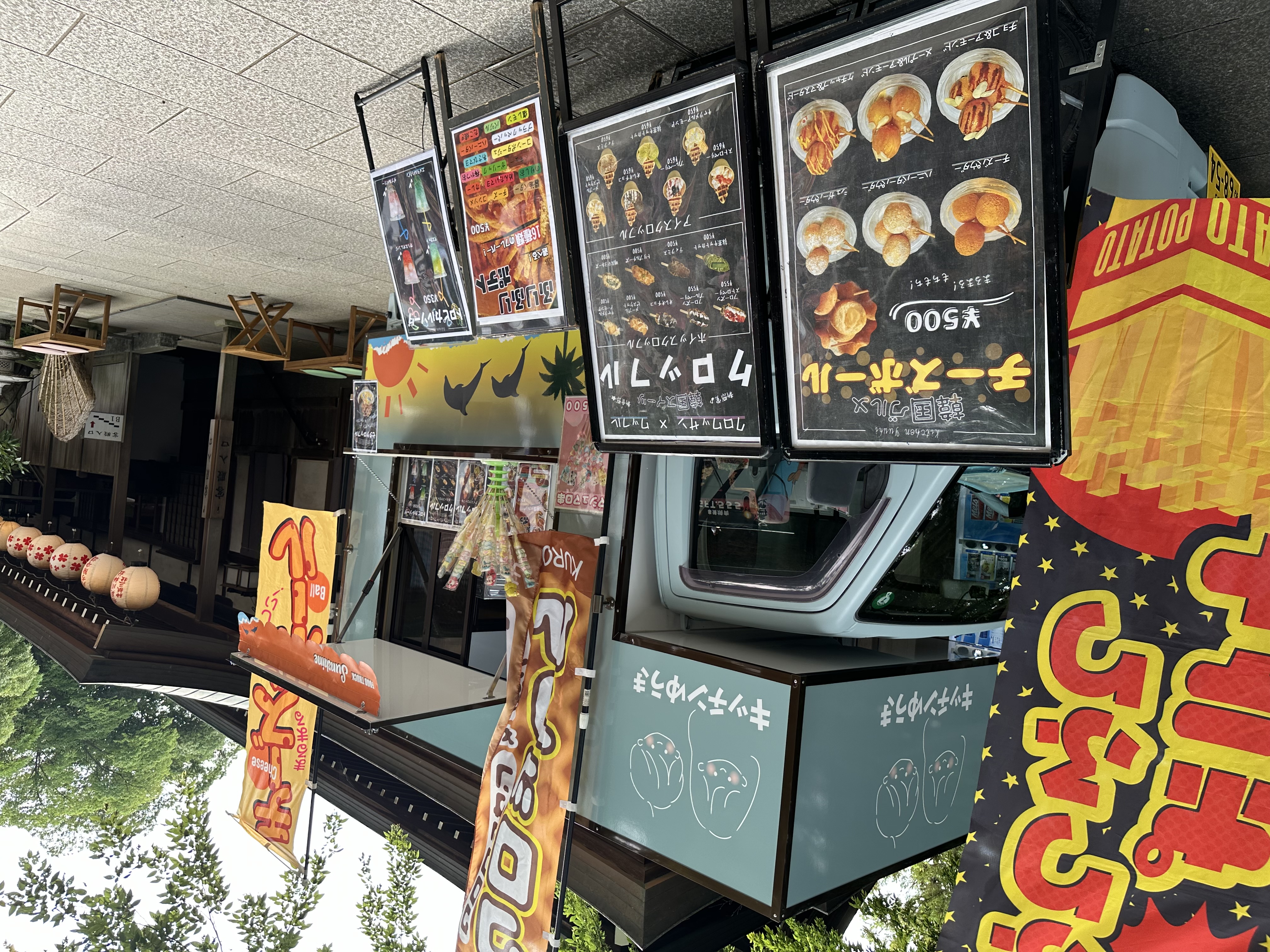 クロッフル、チーズボール、ふりふりポテト、スムージー、アイス、かき氷、マシュマロ串、など、、